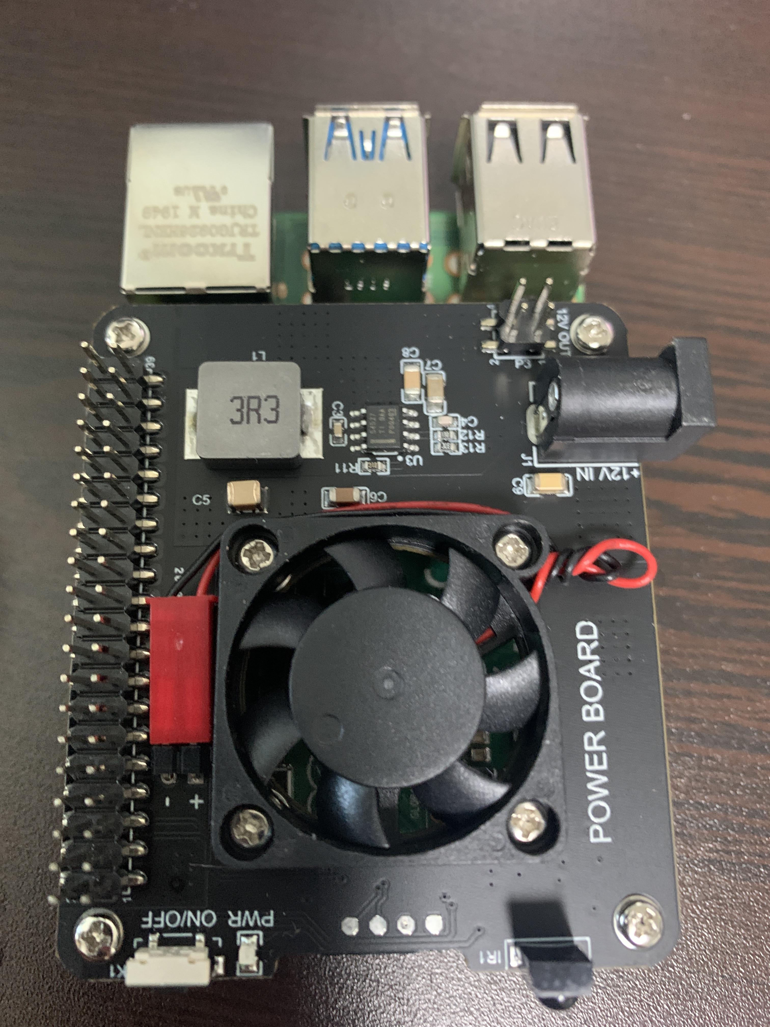 오늘 보드는 중국산 전원 공급보드 인데, 12볼트 어뎁트로 공급하면 알아서 5볼트로 라즈베리에 공급한다.