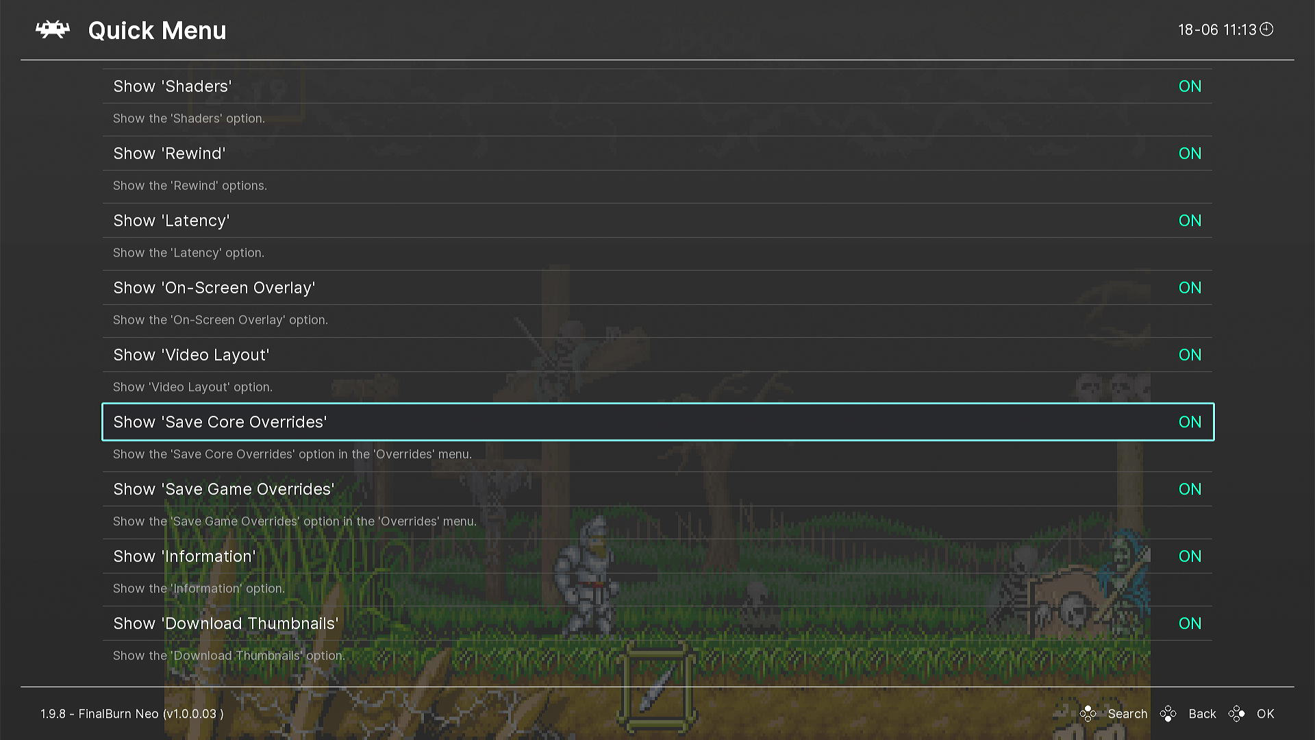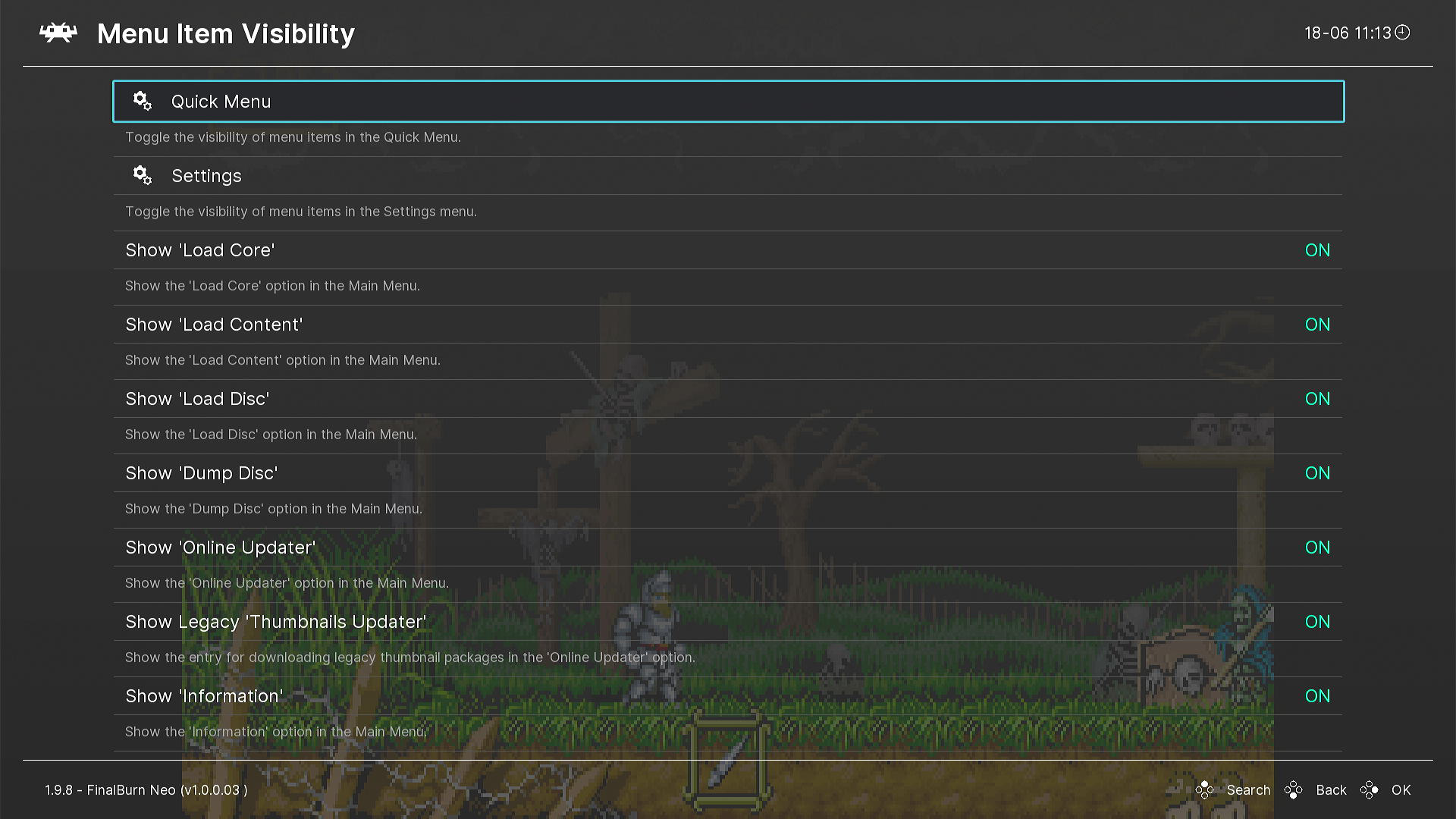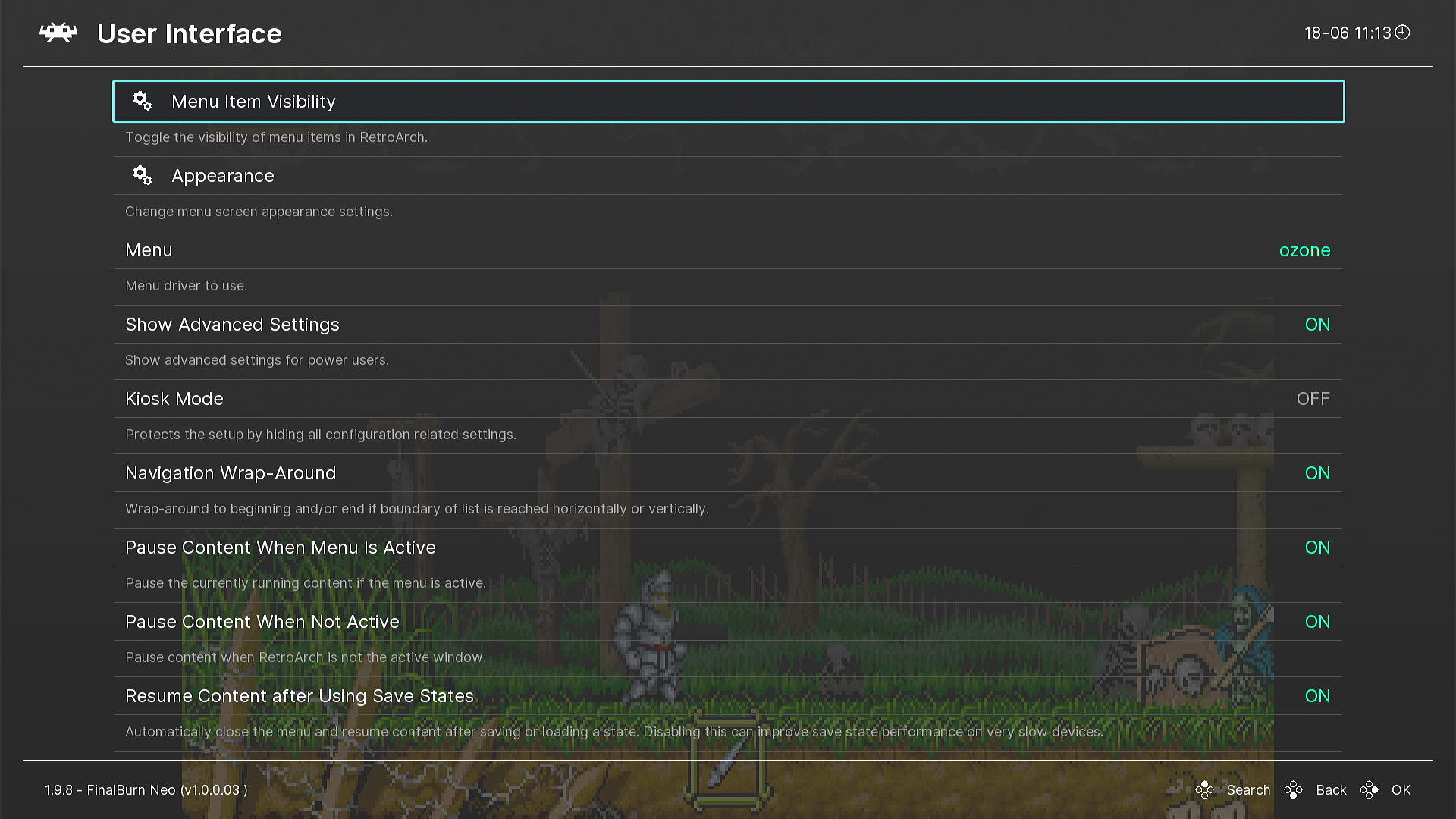 애물렉, 레트로 파이 설정에 따라서 특정메뉴가 보이지 않을떄가 있다.