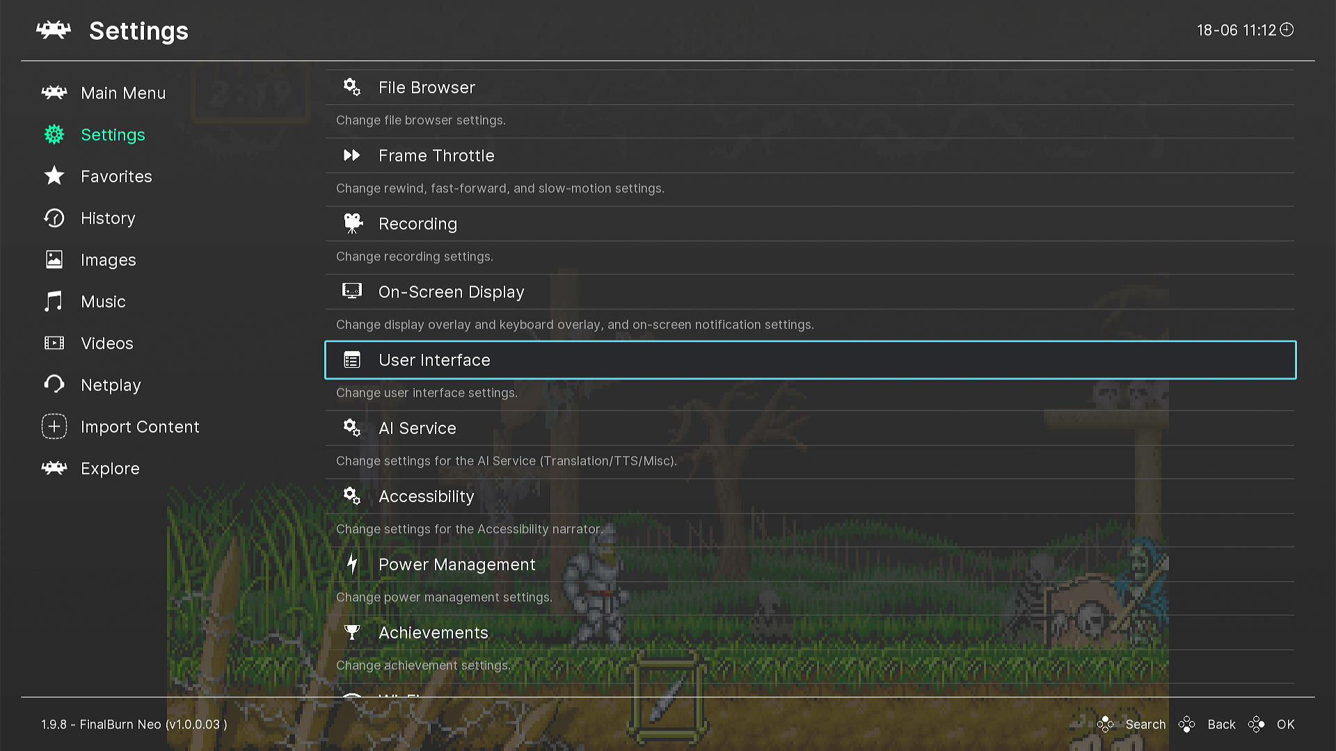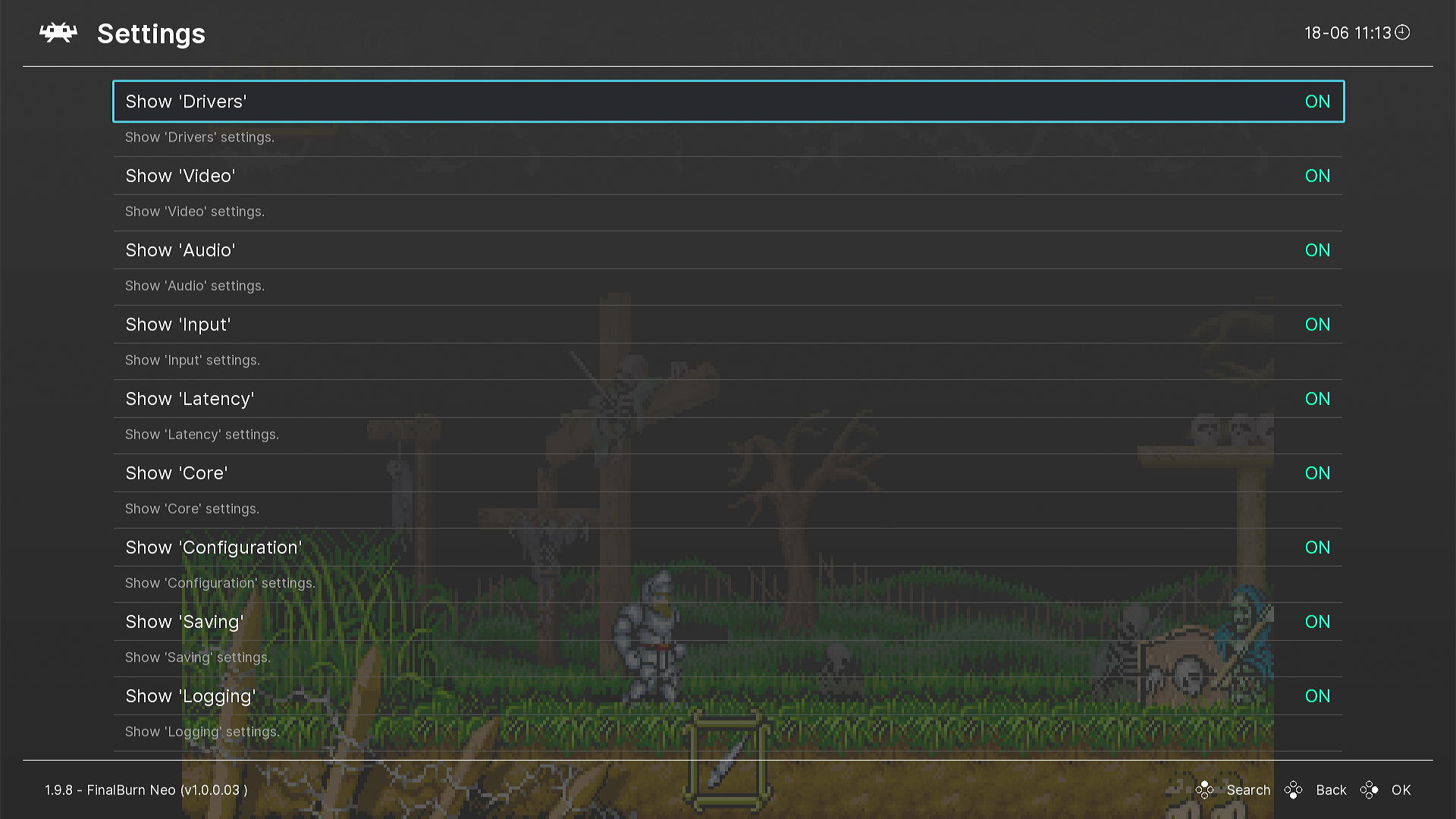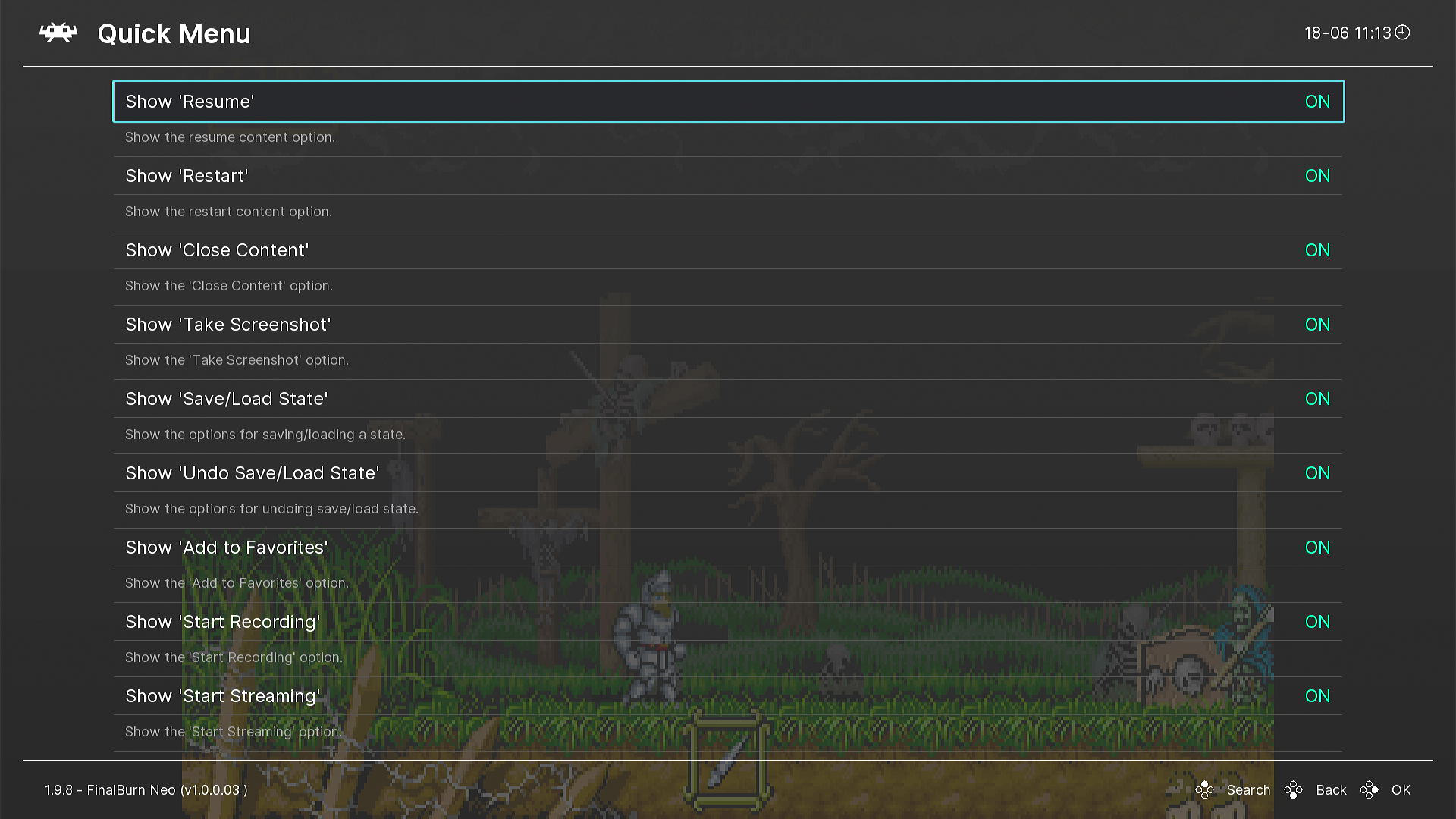 애물렉, 레트로 파이 설정에 따라서 특정메뉴가 보이지 않을떄가 있다.