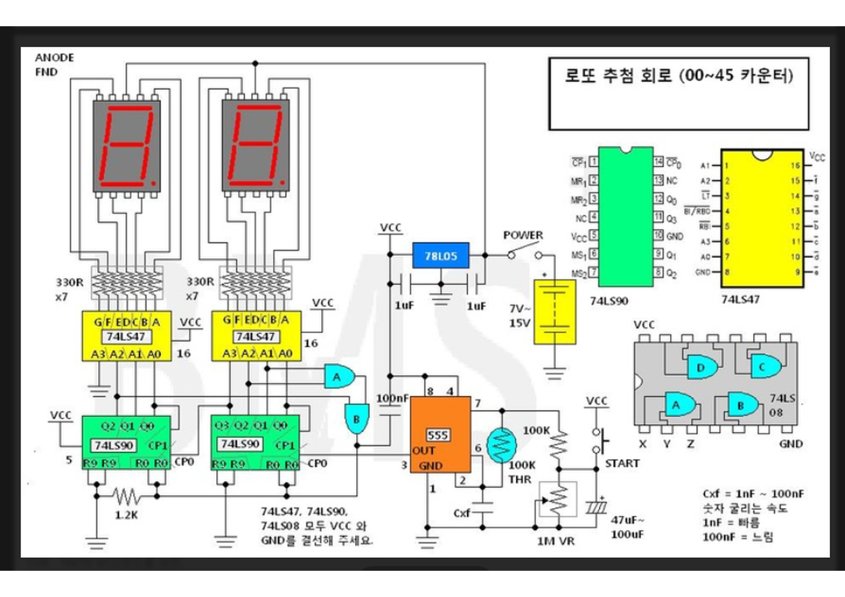 인터넷에서 주문한 물품이 아직 도착할기미가 보이지않아서 한번 만들어볼려고 하는 로또 번호추첨 회로입...