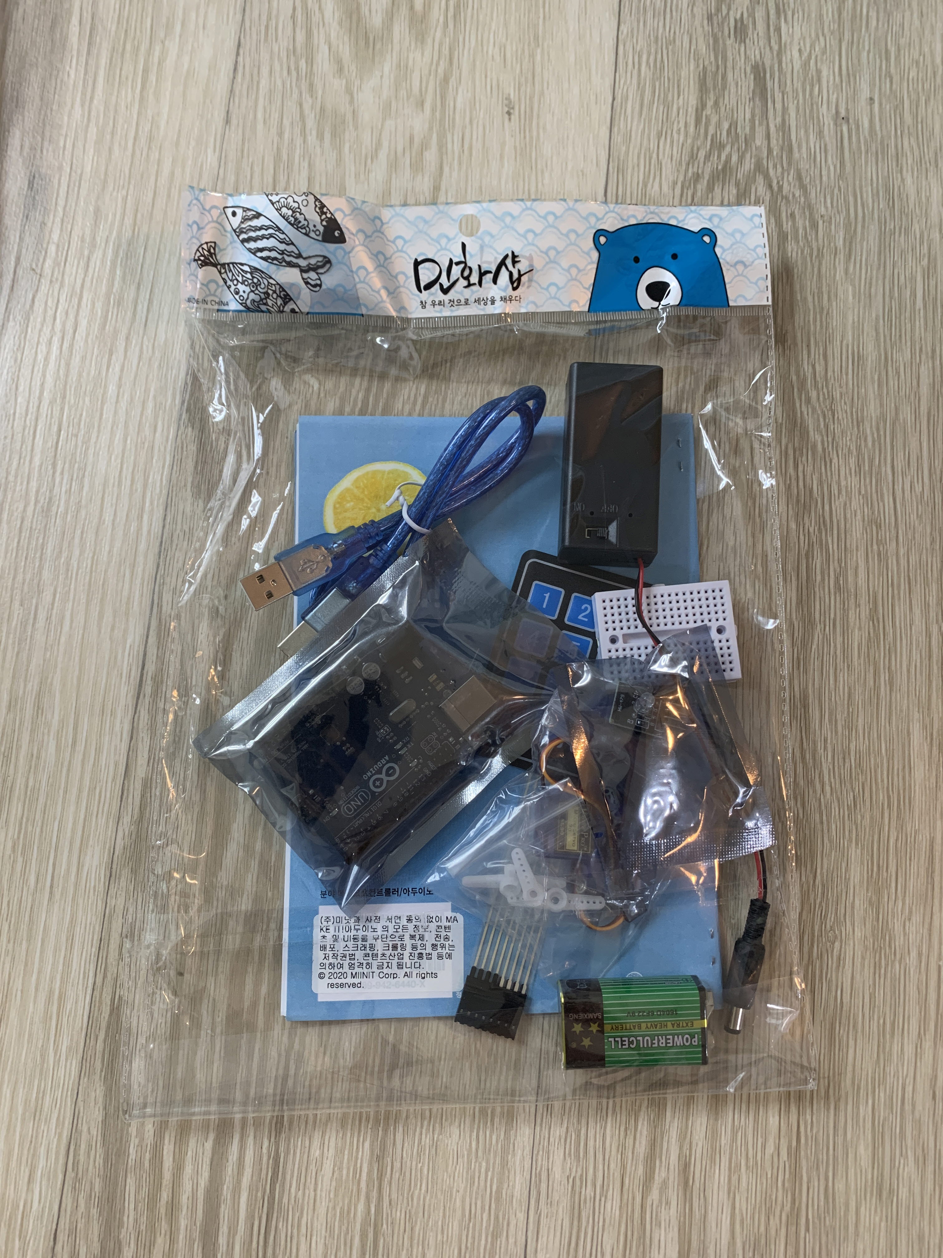 아두이노에 대한 교제는 프린트로 제공되는데 6개의 교구에 대한 설명자료나 조립방법이 제공되면 좋아 보인다.